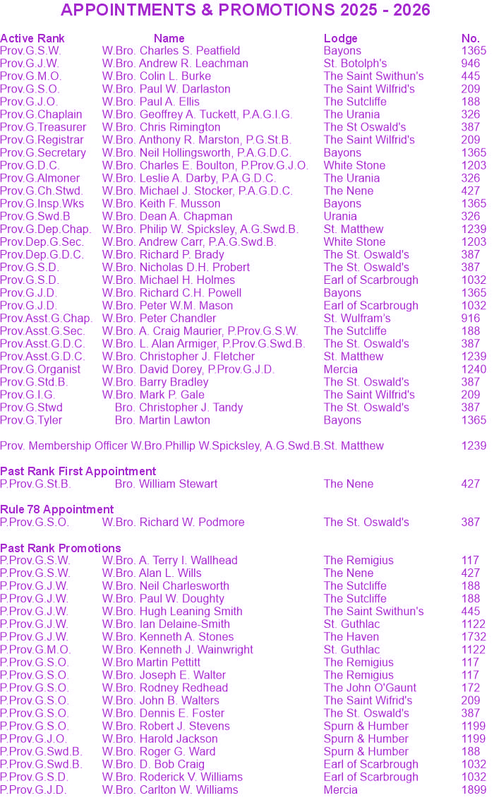 Provincial Grand Lodge 2025. Address by the Provincial Grand Master
